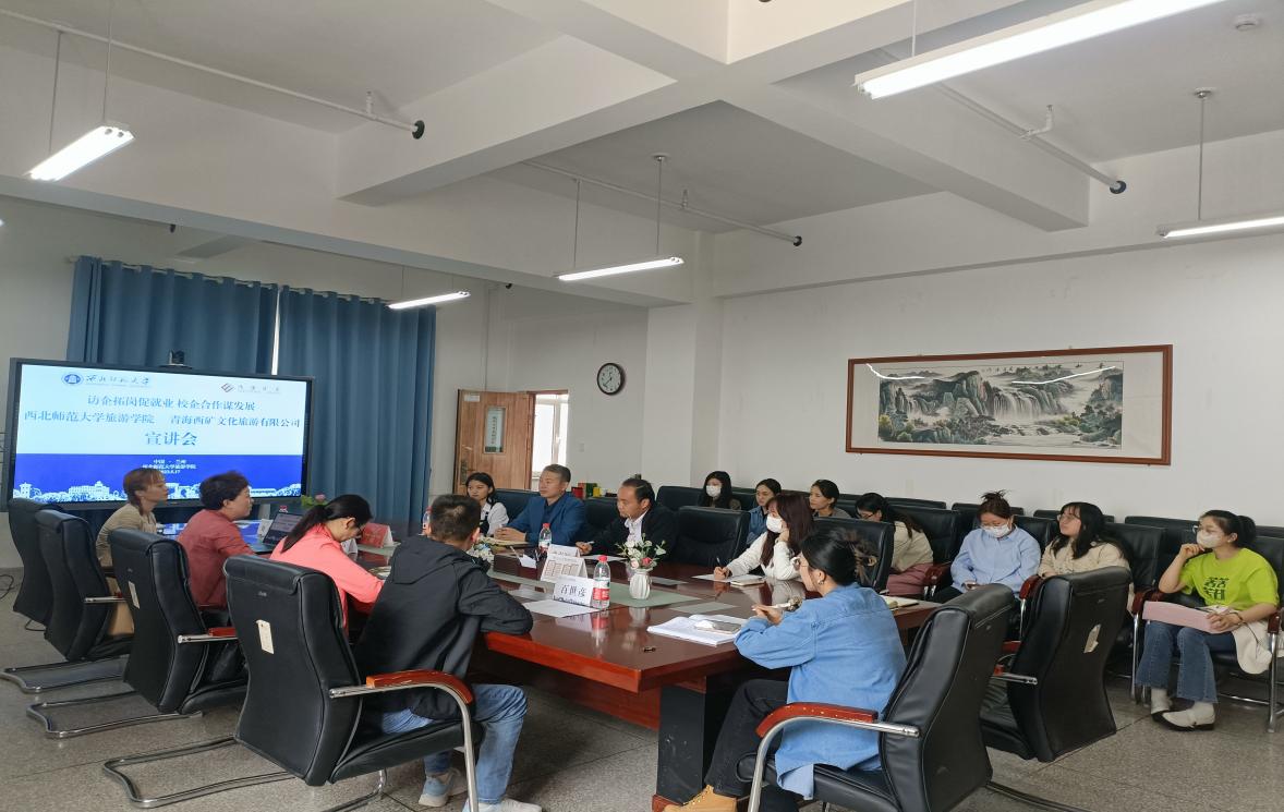 青海西矿文化旅游有限公司副总经理满晓霞就公司发展、组织构建、招聘岗位、招聘需求以及薪资待遇等方面进行了详细介绍,并通过播放视频、文档的方式讲解了西部矿业集团旗下旅游景区发展现状,以更直观的方式让同学们了解工作环境。